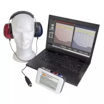 Casque audiométrique Audiosmart CA + DD45H1, supra‑aural, 10 Ω, conçu pour les audiomètres professionnels : performance fiable (100–8000 Hz), coussinets confortables, arceau réglable et connectique or 6,3 mm. Compatible normes ANSI/ISO, il assure une stérilité électronique, une exactitude diagnostique et une durabilité optimale.