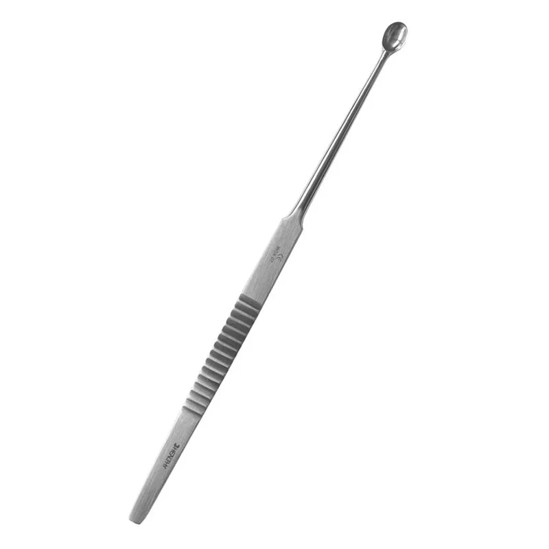 Curette de Besnier pleine en acier inoxydable, conçue pour un grattage précis et une excavation contrôlée des tissus. Manche ergonomique offrant une prise en main sûre et un confort optimal. Utilisée en dermatologie, chirurgie dermatologique et soins spécialisés.
