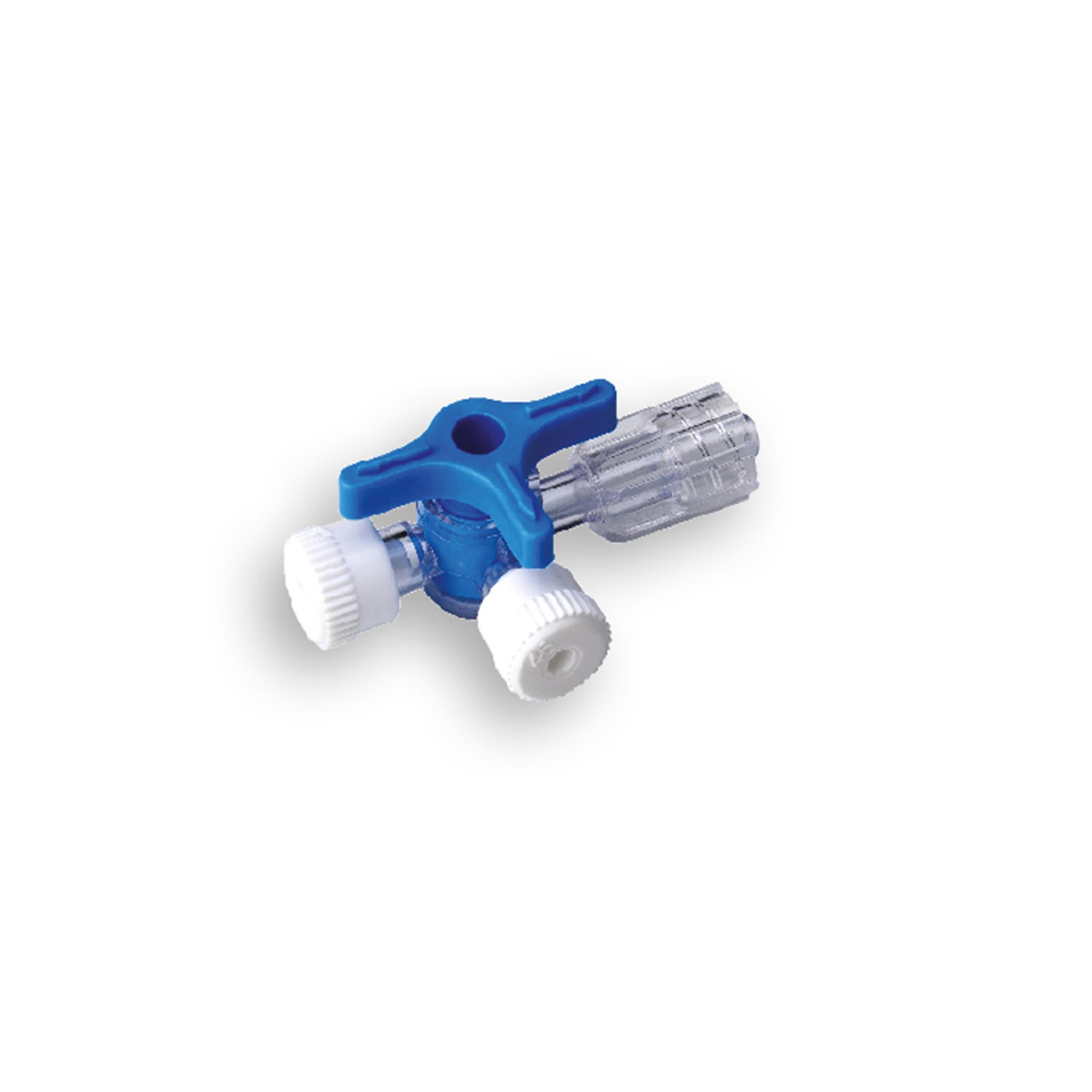 Robinet 3 voies en PVC ou métal, assurant une distribution fluide et un contrôle précis des fluides médicaux. Conçu pour une connexion sécurisée et une manipulation facile en environnement clinique.