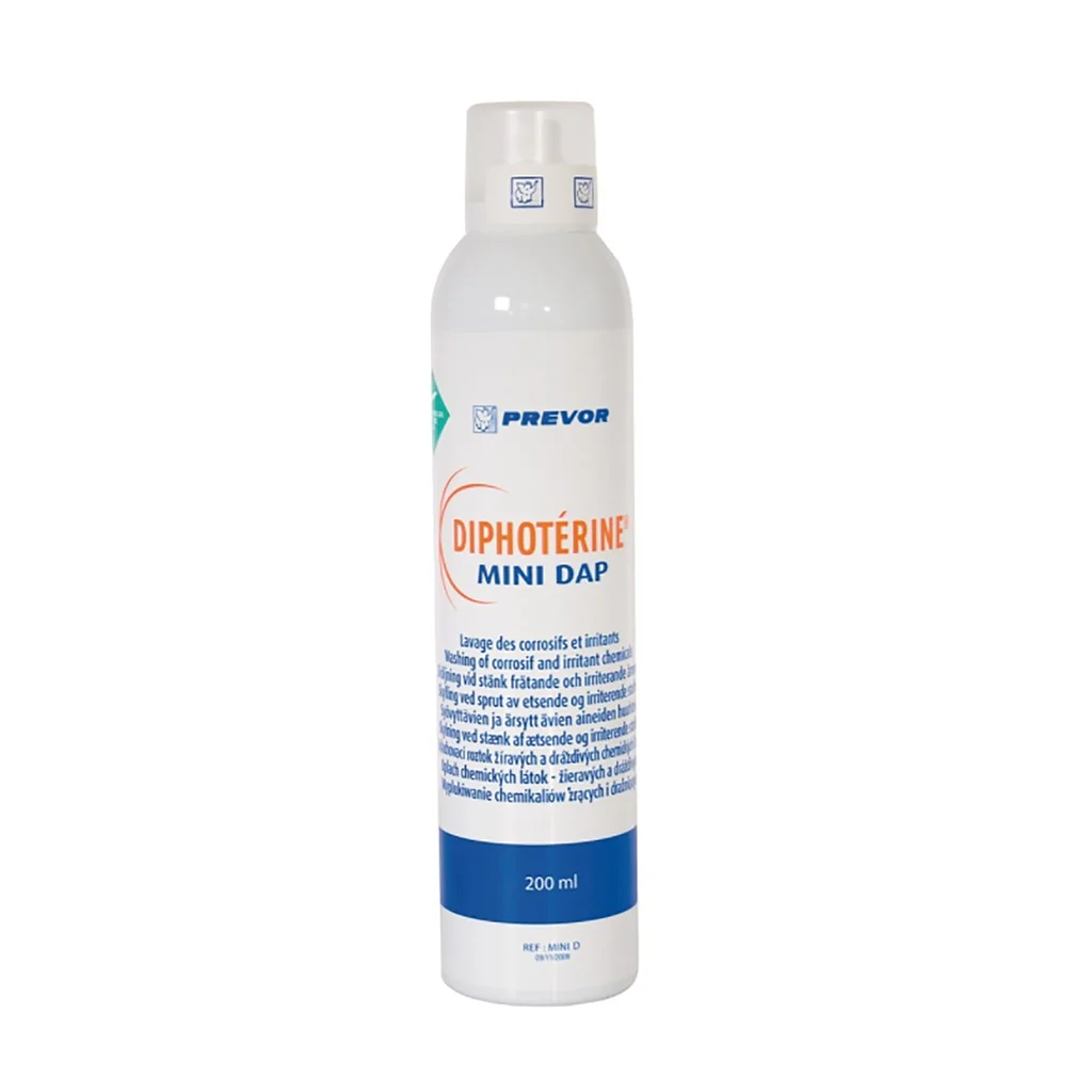 Le spray Diphotérine 200 ml est conçu pour la décontamination d’urgence en cas de projections chimiques, neutralisant rapidement les agents agressifs. Conditionné en lot de 10 unités, il est indispensable en milieu industriel ou médical.