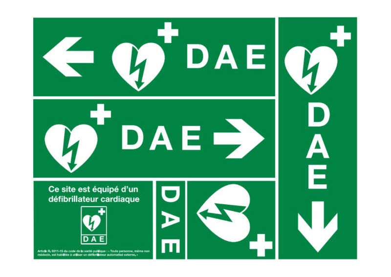 Pack de 5 signalétiques DAE – Signalisation obligatoire pour défibrillateurs externes automatisés